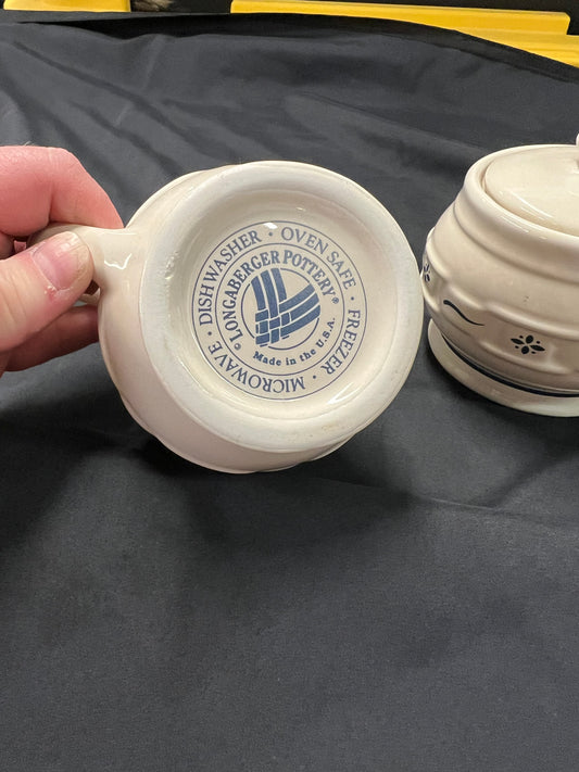 Longaberger cream & sugar set in classic blue