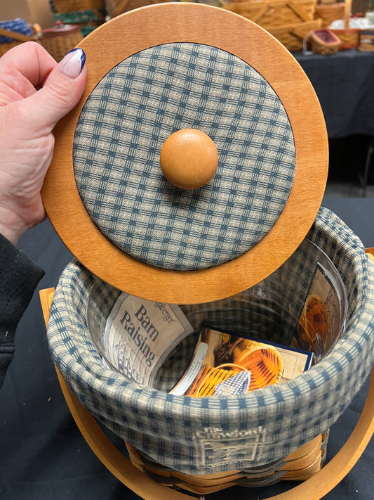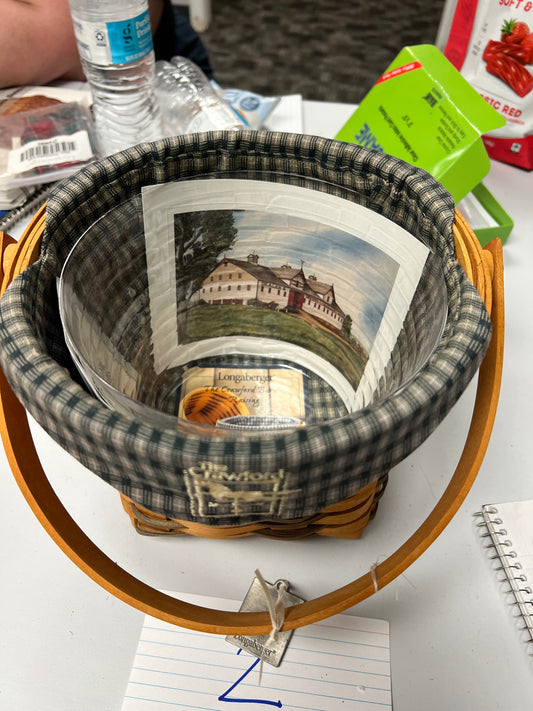 Longaberger Crawford barn baker with liner, protector, tie on & lid