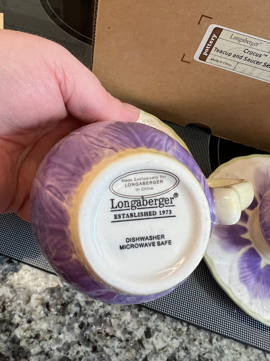 Longaberger crocus teacup & saucer set of 2
