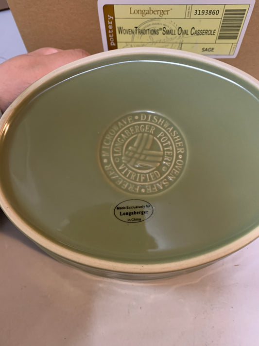 Longaberger Woven Traditions Small Oval Casserole Dish in Sage