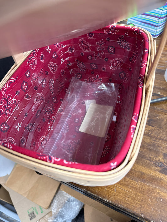 Longaberger spring basket with lid, liner, and protector