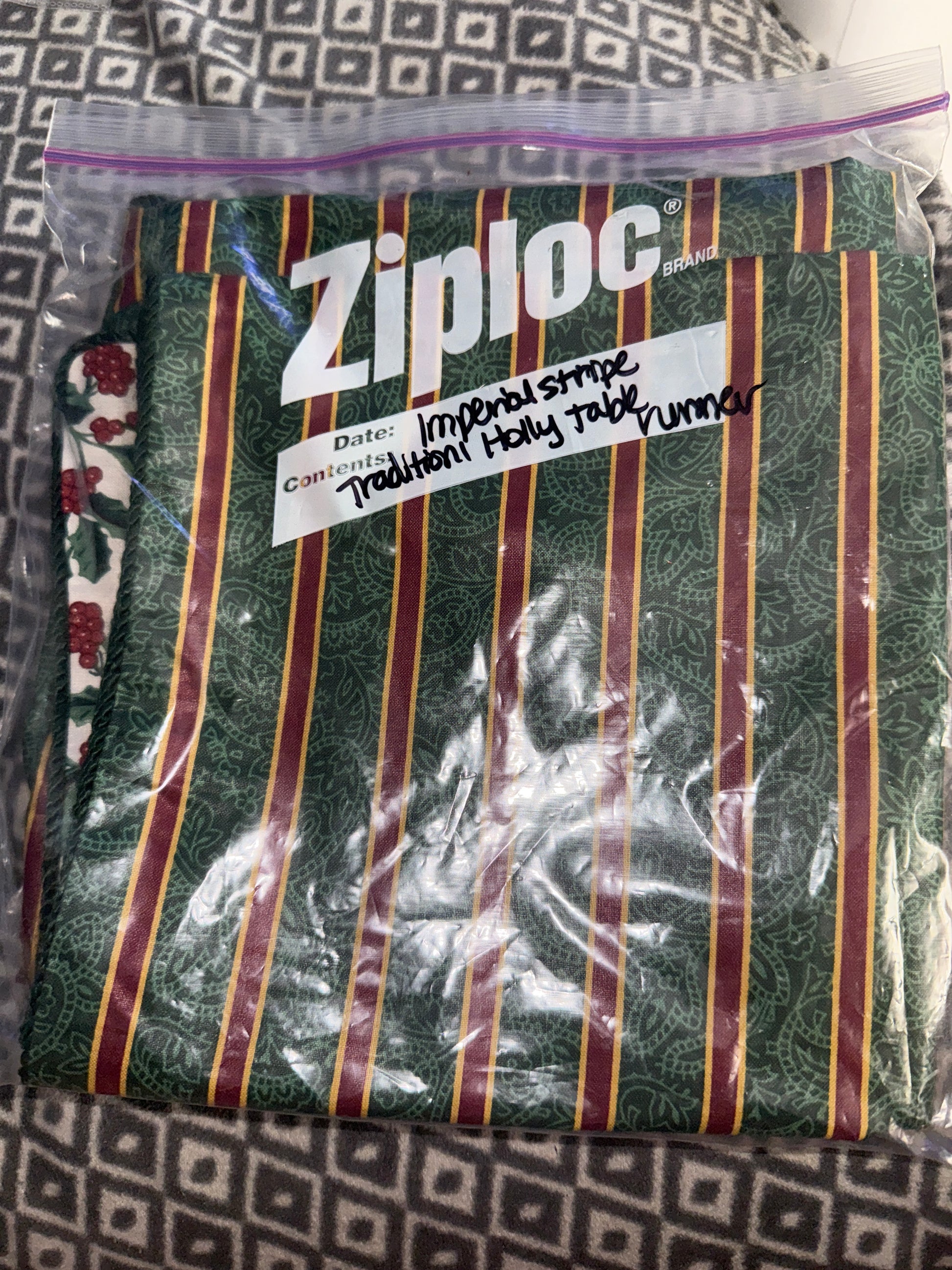 Longaberger reversible table runner in Holly & Imperial stripe