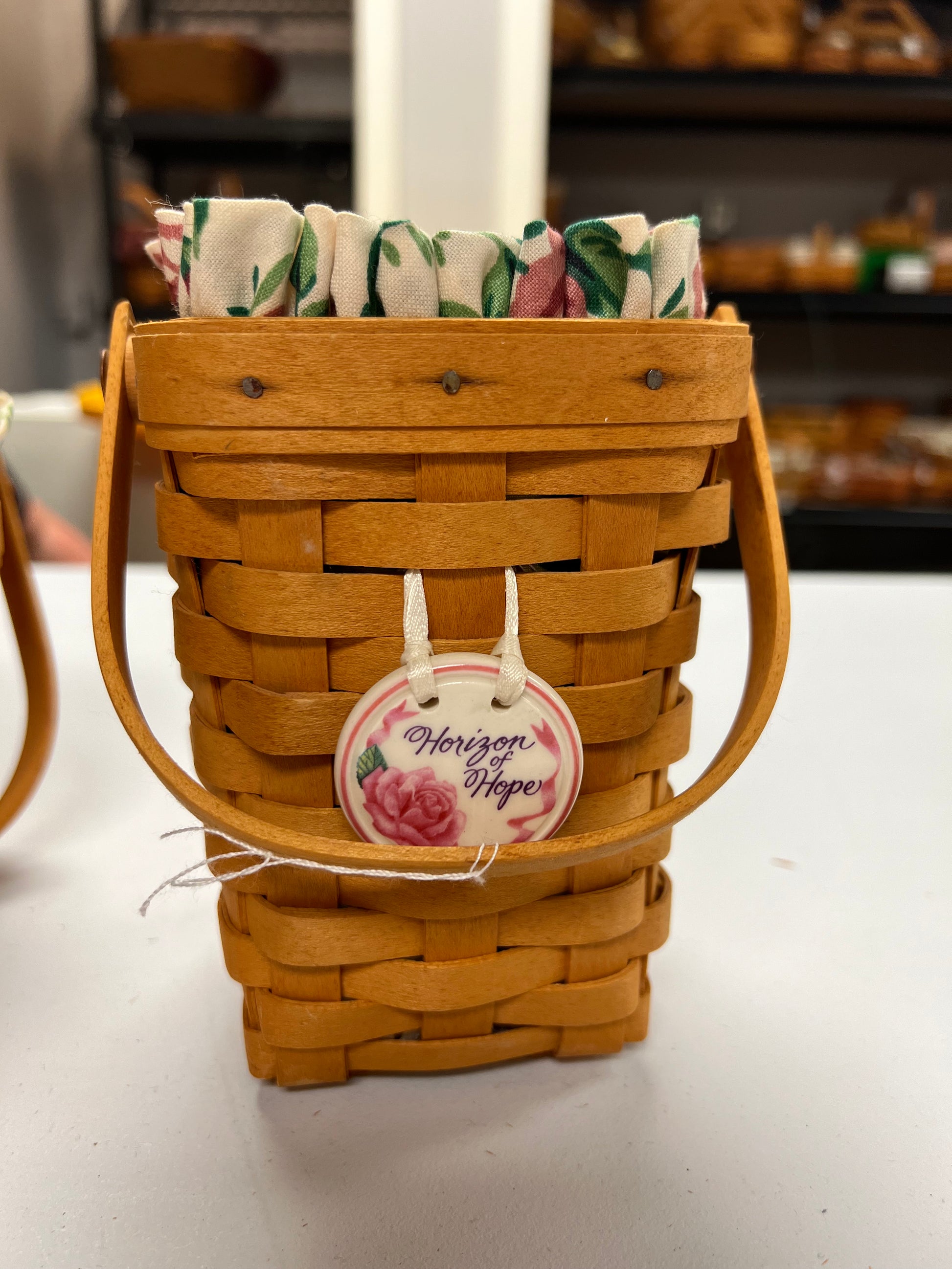 Longaberger 1998 Horizon of Hope Basket with Liner, Protector and Tie On