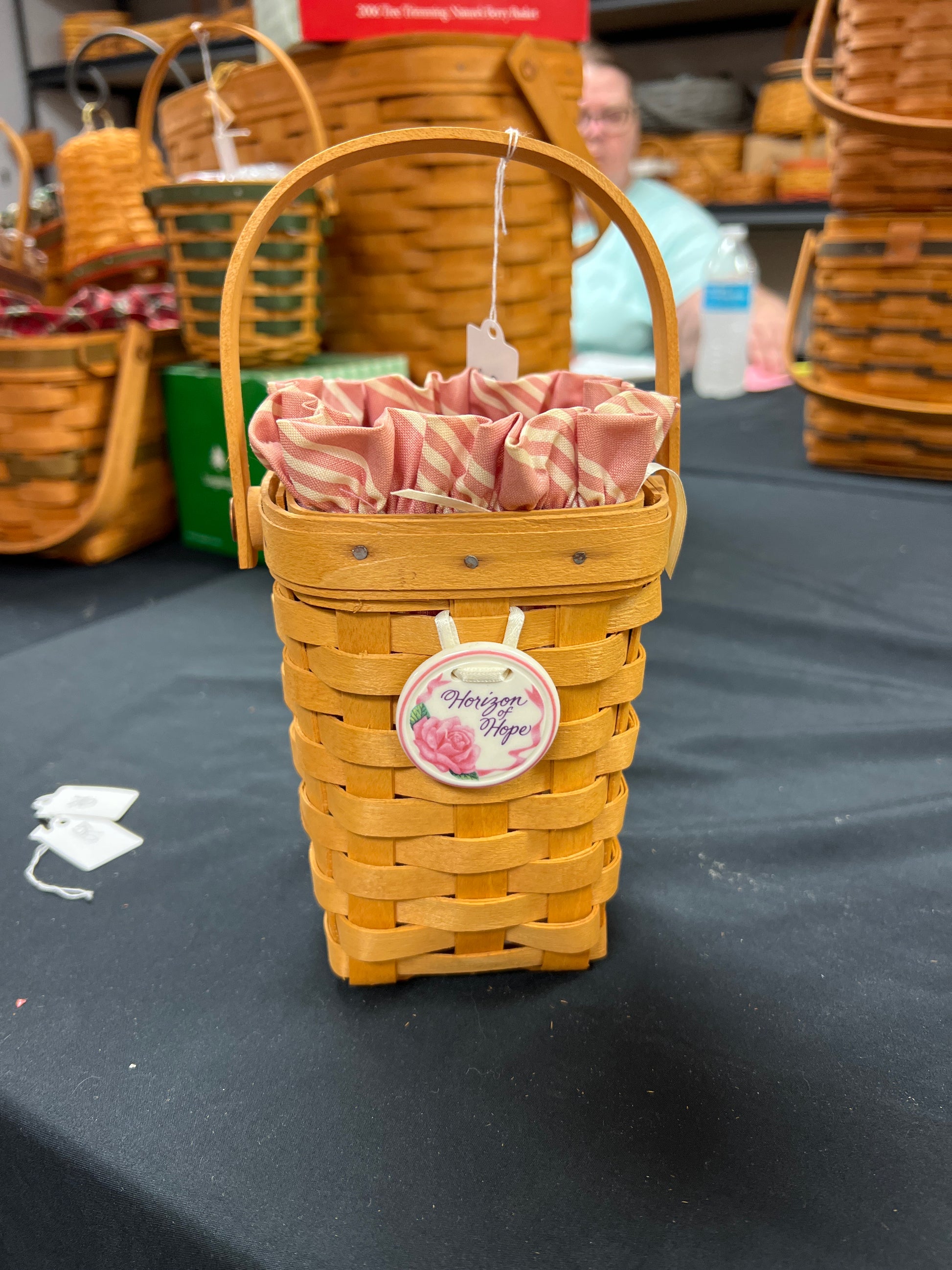 Longaberger 1998 horizon of hope basket with liner, protector & tie on