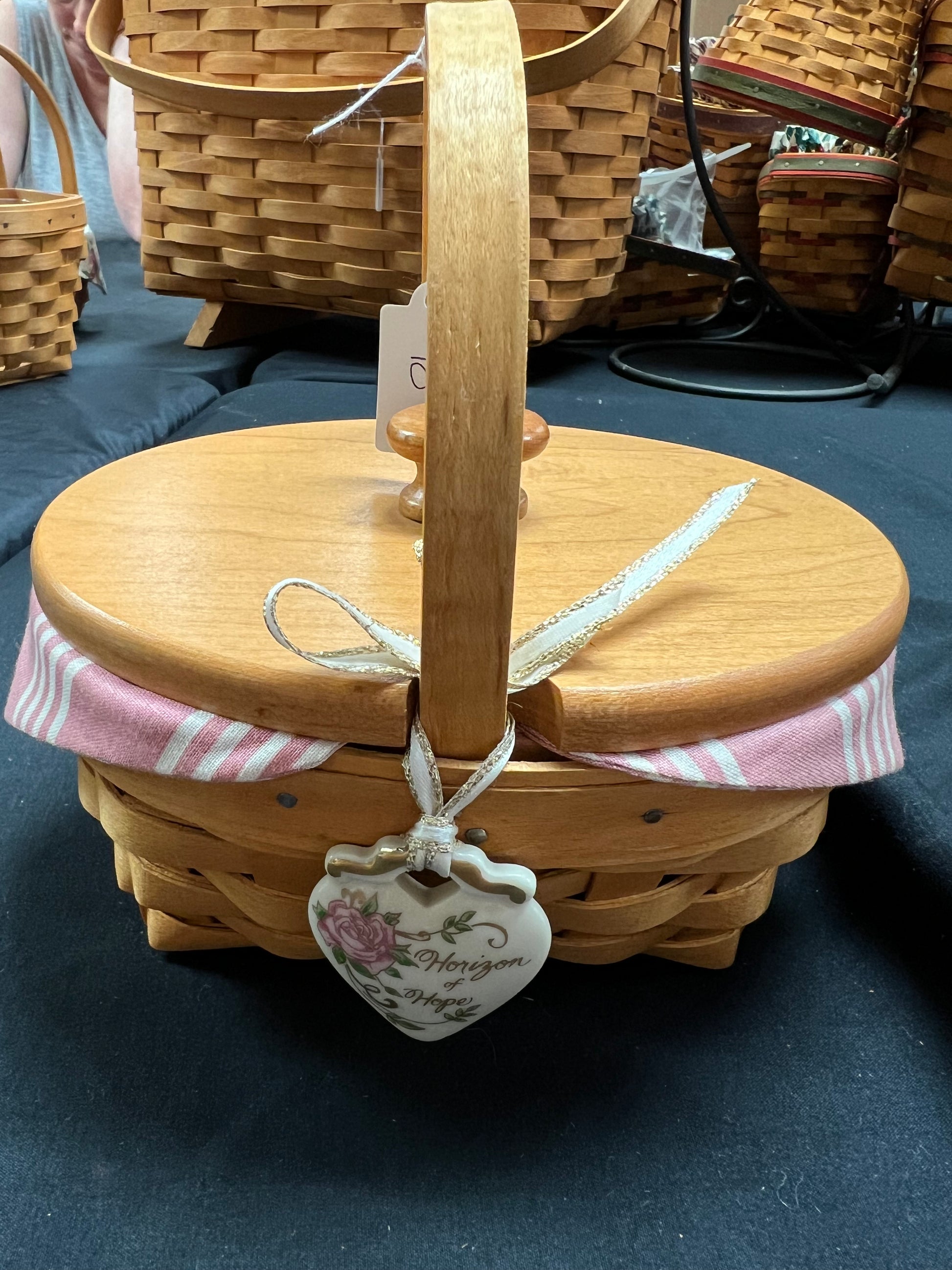 Longaberger 1999 horizon of hope basket with liner, lid, protector & tie on