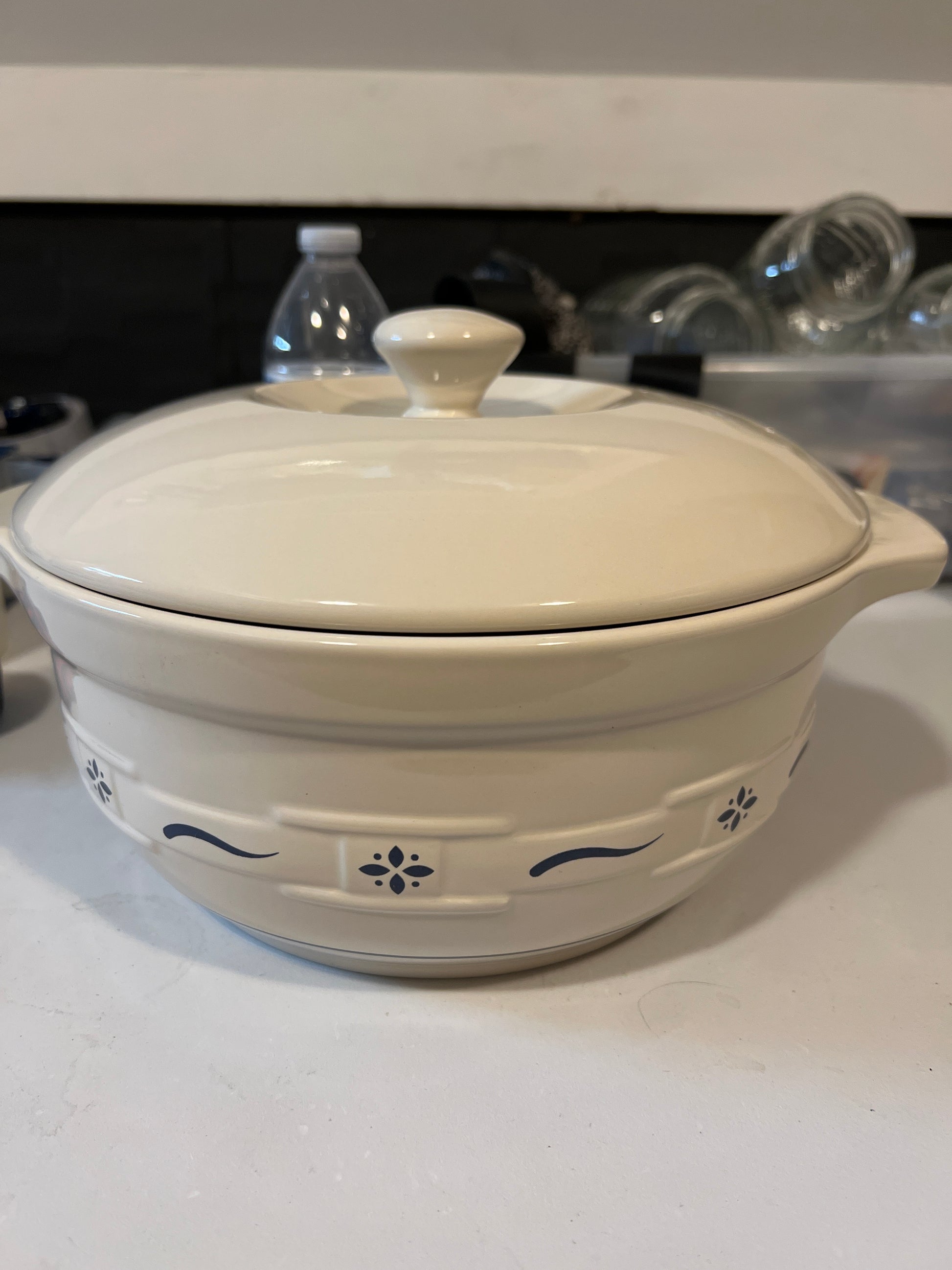 Longaberger large covered casserole dish in classic blue