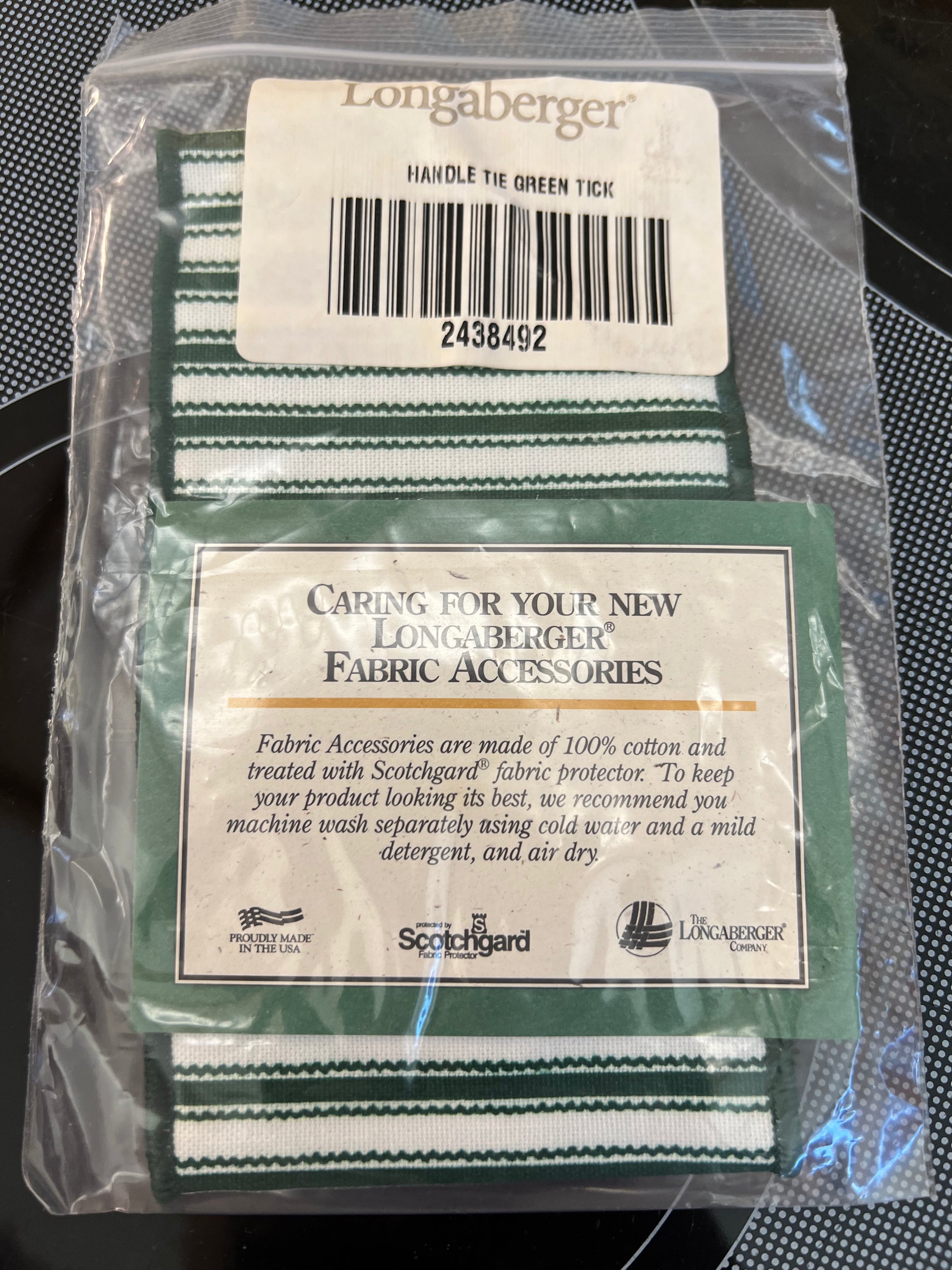 Longaberger Handle Tie in Green Ticking